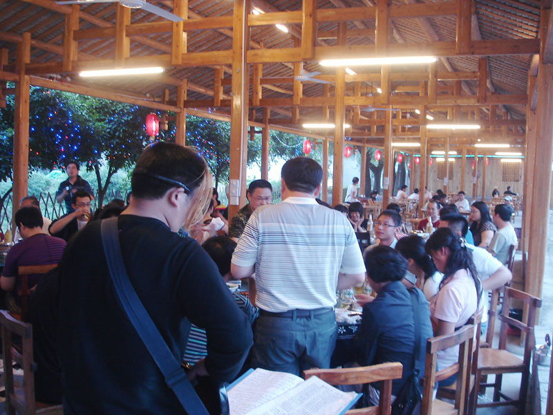 張家界武陵源大作坊美食城是一家集垂釣休閑,特色餐飲,夜市為一體的大型風(fēng)味美食城!位于風(fēng)景如畫的武陵源風(fēng)景區(qū)區(qū)政府所在地,占地3000多平方米,可同時(shí)容納400多人就餐。這里也是景區(qū)內(nèi)匯集土家美食,苗家美食的第一坊!美食城按純木四合院建造,內(nèi)設(shè)酒作坊,豆腐作坊,臘味作坊,糍粑作坊,有垂釣區(qū),燒烤區(qū),菜品自助區(qū),客人廚藝展示區(qū),農(nóng)產(chǎn)品展銷區(qū)等。酒作坊內(nèi)聘請(qǐng)了民間煮酒大師現(xiàn)場(chǎng)煮酒,你有機(jī)會(huì)可以現(xiàn)場(chǎng)吃到熱乎乎的頭鍋酒,酒坊內(nèi)有純米酒,包谷燒,高梁酒,有用野果泡制的各種果酒---燈籠酒,楊梅酒,彌猴桃酒等,更有特色的是把高梁酒放在正在生長(zhǎng)的楠竹內(nèi),用竹內(nèi)竹膜的香味把酒增香,十二天就把竹子砍下再放養(yǎng)三天就好了,客人要吃現(xiàn)場(chǎng)鋸竹筒酒吃!豆腐坊也是聘請(qǐng)民間老農(nóng)現(xiàn)場(chǎng)用自制的石磨做豆腐,在這里你可以吃到真正有豆香味的原汁原味的石磨豆腐,和渣,菜豆腐,豆腐腦等豆制品!臘味作坊里有冬天用各種香料熏制的正宗湘西藏臘肉,臘豬頭肉,臘香腸,臘豬腳,各種臘制品臘野味等。糍粑坊每天在晚上人多用餐高峰時(shí)現(xiàn)場(chǎng)打滋粑,客人也可以自己參與打糍粑這個(gè)快樂的過程,想受過年時(shí)才有的熱鬧情景!在垂釣區(qū)里我們放養(yǎng)有很多野生魚類,有時(shí)間了你可以來這里休閑垂釣,得到的魚我們就會(huì)給你現(xiàn)場(chǎng)加工,有清沌的,紅燒的,青椒燜的,酸湯的,都很好吃哦。燒烤區(qū)里,我們高薪聘請(qǐng)了燒烤大師為你現(xiàn)場(chǎng)制做,你也可以自己動(dòng)手,有烤羊排羊腿,各種串烤,烤全魚,烤全兔等,還有各種鐵板烤可以自己炒著吃!菜品自己選區(qū)里有各種山野菜,壇子菜,干菜,臘味等,有各種鮮活的魚類,河蛘,水魚,田螺,龍蝦等,有各種農(nóng)家的土雞土鴨等,有各種鮮活的野味等你來享受美味呢!客人廚藝展示區(qū)里老板特設(shè)制地幾口大鍋, 很有特色的是, 你可以自己親自下廚, 酸甜苦辣任您自由調(diào)配 。 煮好了, 大家就圍著這“灶臺(tái)”合一的飯桌享受張家界的美食了。(張家界的三下鍋是很有特色的,是邊煮邊吃的, 只是這“三下鍋”是“大型三下鍋”而已。到張家界旅游,吃張家界的“三下鍋”是一種獨(dú)有的旅游體驗(yàn),到大作坊吃“大型三下鍋”,則更將會(huì)為你的旅程增添一份難得的回味。農(nóng)產(chǎn)品展銷區(qū)里展示著當(dāng)?shù)鼗蛳嫖鞯貐^(qū)最暢銷的農(nóng)產(chǎn)品食品:正宗湘西鄉(xiāng)里臘肉,香腸,各種臘制品,洗車河霉豆腐,靈潔牌剁椒辣醬系列,菌油,正宗茶籽油,苗家酸湯,鄉(xiāng)里正宗葛粉,大壇湘西五糧液,竹簡(jiǎn)敲敲酒,張家界茅巖霉茶,野生蜂蜜,高山葛粉,張家界第一山珍巖耳,葛根片等等!