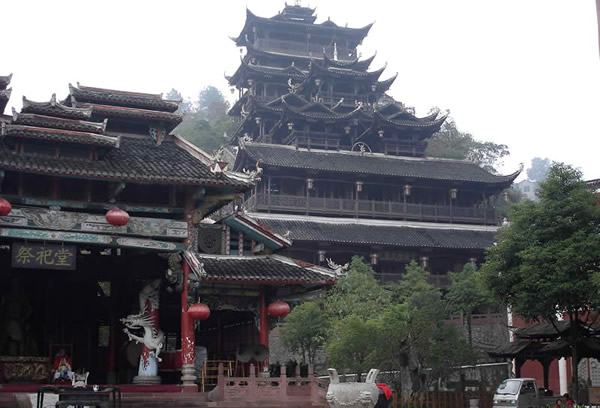 土家風情園是一座人文景觀與自然景觀相融合,集旅游觀光、文藝表演、奇珍展覽、住宿、娛樂、購物等于一體的大型綜合性旅游服務企業(yè)。土家風情園主要由土家建筑群落、民風民俗展示、文藝演出、客房、餐飲等功能區(qū)構成。其建筑多為木石結構,或雕梁畫棟,金碧輝煌,或飛檐翹角,雅致玲瓏,代表作有土司城堡、擺手堂、土家山寨、后王宮等。特別是沖天樓,依山造閣,氣勢恢宏,該樓為只有小學文化程度,12歲出門學藝的土家青年李宏進設計,樓高40米,九重十二層木質樓閣,回復曲徑,獨具匠心。