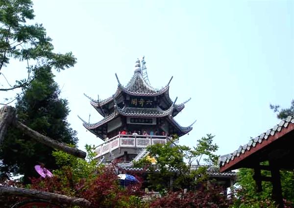 “六奇”是指山奇、水奇、云奇、石奇、動物奇、植物奇!敖搅魟氽E,我輩復登臨”;“欲窮千里目,更上一層樓”。站在閣頂,可以看到袁家界、楊家界、天子山、朝天觀、三姊妹峰……