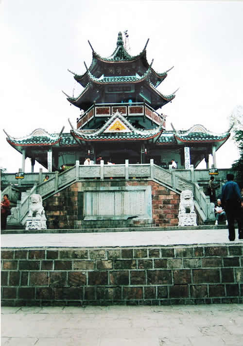 六奇閣是一幢塔狀的樓臺,座落在黃石寨的最高處。它是自然景觀群體唯一的一處人文景觀,突兀在石砌的方臺基上。湘潭大學教授羊春秋老先生于此撰聯(lián)曰:名動全球,到此真堪三擊節(jié);勢拔五岳,歸來不用再看山。