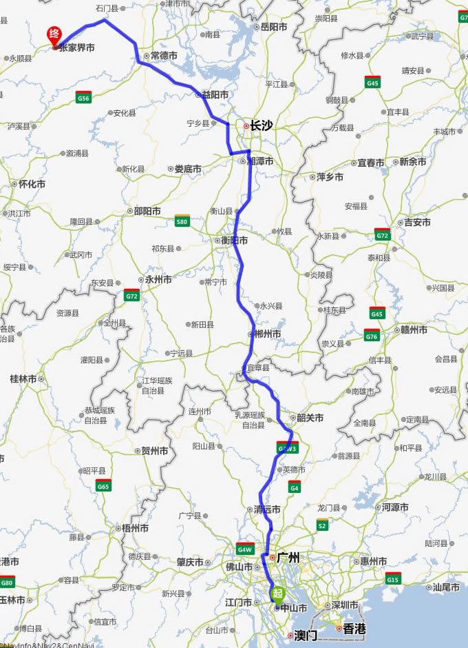 現(xiàn)在位置:張家界旅行社->交通指南->自駕車路線 -> 中山到張家界旅游自駕車線路,中山去張家界自己開(kāi)車要多長(zhǎng)時(shí)間,有多少公里