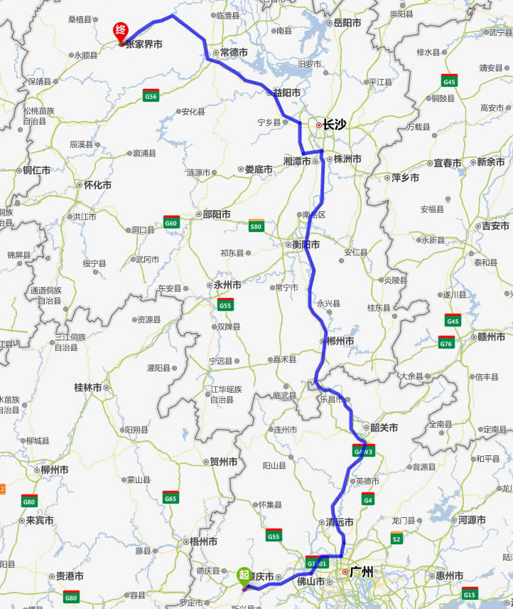 現(xiàn)在位置:張家界旅行社->交通指南->自駕車路線 -> 云浮到張家界旅游自駕車線路,云浮去張家界自己開車要多長時間,有多少公里