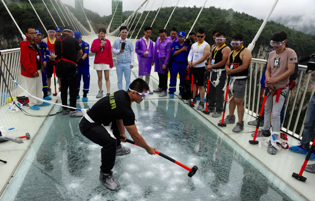 2012年11月23日,這座擬建成世界最高、跨度最長(zhǎng)的玻璃橋——張家界大峽谷玻璃橋的設(shè)計(jì)師HaimDotan攜以色列著名建筑安全分析師doronshalev,實(shí)地考察玻璃橋建設(shè)項(xiàng)目,該工程建設(shè)施工由中國(guó)建筑業(yè)龍頭企業(yè)中國(guó)建筑第六工程局有限公司橋梁公司實(shí)施建設(shè)。