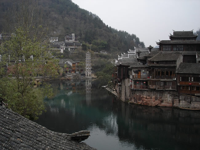 【鳳凰古城位于沱江之畔、群山環(huán)抱、關隘雄奇、碧綠的沱江依著城墻緩緩流淌,疊翠的南華山麓倒映江中,江中漁舟游船數點,山間暮鼓晨鐘兼鳴,懸崖上的吊腳樓輕煙裊裊,碼頭邊的浣紗姑笑聲朗朗,兩岸已有數百年歷史的吊腳樓更是別有一番風味;順水而下穿過虹橋一幅江南水鄉(xiāng)的畫面便展現(xiàn)于眼前--萬壽宮、萬名塔、奪翠樓……一種遠離塵世的感覺悠然而生;鳳凰--猶如“一幅濃墨淺彩的中國山水畫”】,入住酒店。