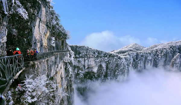 上 午: 遠(yuǎn)觀霧色百丈峽、踏入神秘的潘多拉世界,游覽張家界核心景區(qū)(門(mén)票已含)精品游覽線——【袁家界景區(qū)】(乘百龍?zhí)焯萆闲,門(mén)票72元/人已含):袁家界風(fēng)景以雄、奇、險(xiǎn)、峻著稱(chēng),在十多華里的環(huán)山游道上,沿途景色美不勝數(shù),其中可觀賞到:電影《阿凡達(dá)》中“哈利路亞山”原型“乾坤柱”、迄今為止發(fā)現(xiàn)落差最高的天然石橋——天下第一橋(橋墩絕對(duì)高度354米)、九天玄梯、八卦圖、猿人望月、拜仙臺(tái)、迷魂臺(tái)、后花園等景點(diǎn);乘景區(qū)環(huán)保車(chē)(約40分鐘)前往游覽峰林奇觀--【天子山】:天子山被譽(yù)為峰林之王,千座山峰兀立云霧中、風(fēng)光旖旎、景色秀美,游覽天子閣、西海石林、御筆峰、仙女獻(xiàn)花、賀龍公園、石船出海、賀龍銅像等景點(diǎn)。